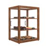 KoolMore 21 In. Artisan Wooden Bakery Square Display case, 3.5 Cu. Ft., Dark Wood Color 3 Tiers. Showcase your baked goods with style using this artisan dark-wood and tempered-glass display case. It's spacious 3.5 cu. ft. interior and three durable shelves provide ample room for pastries, while smooth sliding doors make serving effortless. Stable silicone feet ensure secure countertop placement, and the light wood finish enhances any décor. Built for beauty and durability, this display case also includes a 2-Year Warranty for Manufacturer Defects for added peace of mind. Key Features Artisan Dark-Wood & Tempered Glass Construction - Premium dark-wood finish paired with clear tempered glass panels offers durability and an elevated, handcrafted aesthetic. 3.5 cu. ft. Interior Capacity - Spacious display area, each shelf measuring 18.2 x 14.2, accommodating a wide range of baked goods across three tiers.