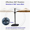 This 10 x 10-ft cantilever patio umbrella provides flexible, all-day shade for outdoor spaces without a centre pole. Designed with 360° rotation and 6 adjustable tilt positions, it allows you to easily adjust coverage as the sun moves. Built with a durable aluminum frame and weather-resistant polyester canopy, it’s ideal for patios, decks, and poolside areas. Cross base included; counterweights not included.