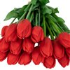 You'll fall in love with our lifelike Real Touch™️ artificial Tulip flowers thoughtfully handpicked for their exceptional quality as members of an exclusive collection of artificial florals. These lifelike tulips are perfect alone in a vase or add them to your floral arrangements for depth and dimension. Product Features: Real Touch™ deep red realistic tulip bundles. Bundles are wrapped in a jute cord. Soft green leaves and stem add dimension. Fully wired stems allow you to shape as desired. Crafted with Northlight Real Touch design. Recommended for in Door use only. Each bundle contains 5 tulip buds. Dimensions: 18-in high x 5-in diameter. Material(s): plastic. Note: Set comes with 6 bundles of flowers.