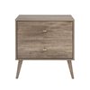 The Prepac Milo 2-Drawer Nightstand is a modern take on a retro look, with a sleek mid-century modern design that adds a touch of vintage styling to your bedroom. Two full sized drawers provide ample room for all your bedside necessities, keeping the area around your bed organized. The tapered solid wood legs and inset drawers deliver a clean and modern look to your bedroom. Brushed brass finished knobs add to the retro-chic design of this functional and fashionable nightstand. Style this nightstand on its own, or combine it with any of the products in the Milo collection for a timeless look. Ships Ready to Assemble, includes an instruction booklet for easy assembly. Manufactured in Canada and meets all North American safety standards. 5-year manufacturer’s limited parts warranty.