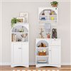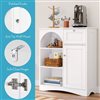 The RiverRidge kitchen pantry storage cabinet combines style with functionality, with an arched design that creates an elegant silhouette while providing ample storage space with adjustable shelving, a smooth-gliding drawer, and a spacious cabinet. This sideboard cabinet fits seamlessly into your kitchen or dining area while maximizing storage potential. The layout features 2 open shelves for displaying favourite items, plus a concealed cabinet space with an adjustable shelf for pantry essentials. The smooth-gliding drawer keeps utensils and linens organized, while the sturdy MDF construction supports up to 110-lb of storage capacity. The crisp white finish resists wear, while the included wall anchoring hardware ensures stability.