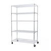 This 5-shelf steel wire shelving unit can easily organize any space. Perfect for homes, offices, garages, and any other room you need to organize. The shelf capacity is 500 lb (227.3 kg) with wheels for convenient mobility. Weight capacity per shelf on levelling feet: 800 pounds