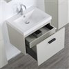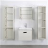 Sleek composition meets purpose with this robust vanity. The integrated ceramic sink and vertically mounted mirror will give any bathroom a stylish and current feel. It includes spacious drawers with soft closing doors and 2 detached cabinets. Plenty of s