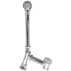 - A pop-up drain in a polished chrome finish comes with the bathtub