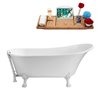 Streamline 28W x 59L Glossy White Acrylic Clawfoot Bathtub with Glossy White Feet and Reversible Drain with Tray