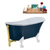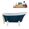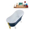 Streamline 28W x 63L Matte Light Blue Acrylic Clawfoot Bathtub with Glossy White Feet and Reversible Drain with Tray