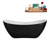 Streamline 71-in Glossy Black Freestanding Oval Bathtub and Tray w/ Glossy White Centre Pop-Up Drain - 66-gal.