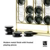 A fun game for any occasion, Stax Four-in-a-Row is perfect for all ages. With a metal-plated finish and frosted playing pieces, this elevated twist on the classic game also doubles as a unique piece of decor to display in your home. Modern brass metal finish and frosted playing pieces create an eye-catching look on any table or counter space. The metal wire stopper keeps pieces and place and provides a simple, and decorative design.