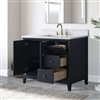 We are introducing a high-quality solid + manufactured wood bath vanity with a sink. It is the perfect blend of functionality and style for the home. This essential piece offers generous storage space, featuring a Flip Down Tray, adjustable shelves, and drawers to keep the belongings organized and easily accessible. Crafted with convenience in mind, the sink cabinet boasts a sleek countertop that adds a touch of elegance and is also a breeze to clean. The rectangular under-mount sink complements the engineered marble countertop, creating a seamless and eye-catching look for the bathroom. Built to last, the under-sink cabinet doors and drawers are equipped with premium-quality hinges and metal handles, ensuring smooth and reliable operation. Versatility is key – the vanity bathroom sink cabinets aren't limited to the bathroom. Its stylish design and functional features make it the perfect fit for a kitchen cabinet with a sink.