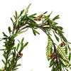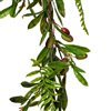Vickerman 22-in green olive garland. This is an artificial item that features green foliage with dark orange olives.