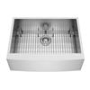 - Farmhouse-style apron front sink, includes all mounting hardware