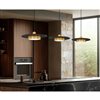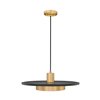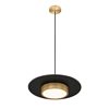 Epic, iconic style makes the most of simplicity in a one-light pendant perfect for a host of settings. Geometric shapes include cylinder elements made of modern gold finish steel construction with a centred large matte black disk creating visual separation. LED lighting through a frosted acrylic shade features dimming options to create mood lighting.