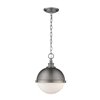 Intriguing in a globe silhouette, this classic pendant lamp is a dramatic addition over an entry or in a kitchen. The pendant boasts an antique nickel finish over the top half of its shade, creating a familiar dome effect, with an opaque diffuser for soft, lovely illumination.
