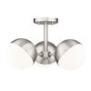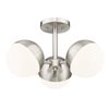 Put a stylish spin on bedroom or den lighting with this modern three-light semi-flush mount ceiling light. Its clustered configuration features a trio of opal glass orbs, each with a moveable shield that creates directional lighting to best suit your space. Its chic brushed nickel finish sets a soothing, refined tone, perfect for understated spaces.