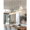 Along a warm satin rail, this modern gold 7-light linear LED chandelier stretches gracefully above the table, its slender cords and frosted cloud shades creating a refined band of light that feels both modern and welcoming. When dimmed for late-night drinks or brunch on a sleepy weekend, it settles into a soft glow that gives the whole room an easy, friendly atmosphere.