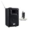 Wireless PA System with Wireless Microphone Weighing in at a smart 19-lbs, this PA system contains a 40-watt solid state amplifier matched to an 8-inch built-in speaker, knocking out more strong, clear sound than any in its class. The included wireless mic will broadcast effortlessly up to 100 feet away from the receiver. 40-watt solid state amplifier 8-inch built-in speaker Wireless mic broadcasts up to 100 feet from the receiver Control panel includes input for wired microphones and auxiliary inputs for MP3 and other media players Sync your smart phone direct to the sound system through built-in Bluetooth technology Play MP3 files through a built-in USB port SD/MMC port Operates via AC plug, or can be used remotely for up to 5 hours with its built-in rechargeable battery