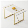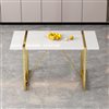 Clihome White Minimalist Retro Rectangular Fixed Composite Dining Table with Gold Pedestal Base