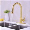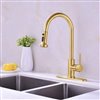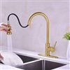 It features a unique shape. This kitchen faucet is designed to be installed as a above counter kitchen faucet. It is constructed with lead free brass. This kitchen faucet comes with a brass finish in gold color. This transitional kitchen faucet product is CUPC certified. It is designed for a 1 hole faucet. This product includes: 1x kitchen faucet.