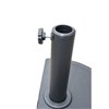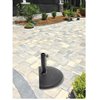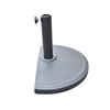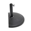 This half umbrella base is perfect for half umbrellas. Is is made of a black plastic shell filled with concrete and weighs 22 lb.