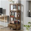 HOMCOM Rustic Brown MDF 3-Shelf Standard Bookcase with 1-Drawer