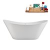 Streamline 67-in Glossy White Freestanding Oval Bathtub and Tray w/ Brushed Gold Centre Pop-Up Drain - 53-gal.