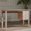 Classic and vintage design work in perfect harmony on this desk. Its streamlined silhouette makes a statement in the home office and in the living room. Graceful turned legs and special dust paint dress up the rectangular desk. Three drawers with finished silver pulls offer welcome storage beneath the expansive worktop.