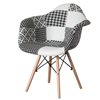 Fabulaxe Black/White Mid-Century Modern Style Fabric Lined Dining Armchair w/ Beech Wooden Legs