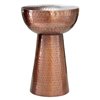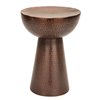 - Small round end table with a hammered metal copper finish