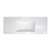 It features a rectangle shape. This set is designed to be installed as a drop in ceramic top set. It is constructed with ceramic. This set comes with an enamel glaze finish in white colour. It is designed for a 4-in centreset faucet.