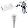 It features a rectangle shape. This vessel set is designed to be installed as an above-counter vessel set. It is constructed with ceramic and it comes with an enamel glaze finish in white colour. It is designed for a 1 hole faucet.