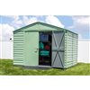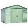 The Arrow line of strong, sturdy steel storage sheds is a pleasant addition to your backyard. Made with galvanized steel that is treated to provide long-term protection against corrosion and rust, Arrow sheds are engineered to protect your stored items from the elements. Inside, the 71-in walls provide extra headroom, vertical storage space, and added entryway clearance. That makes it great for storing ladders, rakes, pole saws, and anything you want to pile high. The Arrow line also has a high gable roof to prevent pooling of rainwater and debris, built-in air vents for better circulation, and locking door handles for security. It also has a smooth, strong Sherwin-Williams Paint Finish that protects it from the elements and gives the steel extra protection from rust and corrosion.