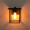 This wall light takes on a clean-lined silhouette and showcases a versatile weather-resistant black finish. The metal frame adds a trendy modern element to your exterior/interior living space. The light can be emitted through the clear glass tube.