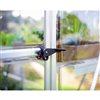 - Includes a large adjustable vent window for optimal ventilation, galvanized steel perimeter base for additional stability, and a practical magnetic door catch to keep the greenhouse door open