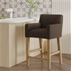 Clihome 26-in H Rubberwood Frame Counter Stool with Arms and Back - Brown Fabric Square Seat