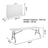 Cosco 8-ft x 30-in W fold-in-half blow-moulded folding tables cater to any event including birthday parties, holiday gatherings or outdoor barbecues in the summer. They can be dressed up or dressed down depending on your specific needs, making them a multipurpose and versatile product! This table features a waterproof top that resists all manners of messes and elements of weather. When it's time to take down the table, the efficient features save space and time with legs that fold in and a centre folding feature that makes storage virtually effortless! The plastic handle included in the frame makes this light weight product easy to carry and transport from place to place. Non-marring leg tips complete this table to ensure floors are not scratched or scrapped during use. The heavy-duty strong steel frame, steel legs, and a low maintenance, sturdy easy to clean top will make your next events stress free and ones to remember as you enjoy the moment!
