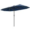 - This double-sided patio umbrella offers a spacious shade area for your outdoor gatherings