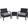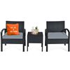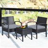 Costway 3-Piece Black PE Rattan Patio Conversation Set w/ Off-White Cushions