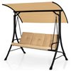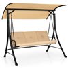 Costway 3-Seat Garden Steel Frame Swing w/ Adjustable Canopy and Padded Cushion - Beige