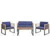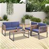 Costway 4-piece Patio Acacia Wood Chair Table and Loveseat - Blue
