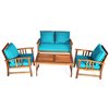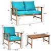 Costway Wood Frame Patio Conversation Set with Blue Cushions Included - 4-Piece