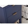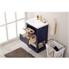 Constructed of solid hardwood, this Klein vanity by Design Element will maintain its beauty and functionality year after year. The porcelain countertop and integrated sink with overflow perfectly match the style of the cabinet and is extremely simple to maintain. There is ample storage space for this vanity despite its small size. Hidden in the flip-down drawer is a unique and useful storage box, and a second fully functional drawer constructed with dovetail joinery sits on soft-closing glides. There is also an open shelf at the base of the cabinet. The included satin gold hardware provides the perfect finishing touch to the blue cabinet.