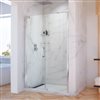 The DreamLine Elegance-LS pivot shower door has a modern frameless design and a chrome hardware finish to enhance any decor with an open, inviting look. The Elegance-LS (SHDR-4327240-01) easily becomes the focal point of your bathroom with a custom glass look at an unmatched value.