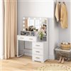 Transform your beauty routine into an enchanting experience with the HOMCOM makeup table! Revel in the ample storage of a large drawer and three petite ones, complemented by six open shelves to showcase your perfumes and cosmetics. Add a touch of Hollywood glamour with a big, illuminated mirror, featuring 10 dazzling LED bulbs. Designed to bring elegance and ease to your bedroom or dressing space!