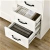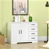 - Large storage space with a double-door cabinet and four drawers for holding daily supplies