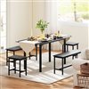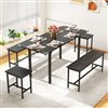 HOMCOM Black MDF/Galvanized Steel Industrial-Style 5-Piece Extendable Dining Room Set w/ Benches