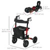 HOMCOM Red Folding Adjustable Rollator Walker with Seat and 10-in Rubber Wheels