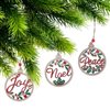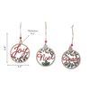 - Each ornament showcases a Christmas-themed text design, a natural wooden finish and a built-in bell that adds a delightful jingle to your décor