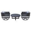 - This fantastic set confidently includes two stylish swivel chairs and one elegant coffee table