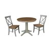 International Concepts 36-in Round Top Pedestal Wood Dining Table with 2 X-Back Chairs - Distressed Hickory/Stone
