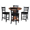 International Concepts 36-in Solid Wood Round Top Pedestal Dining Table w/ 4 Counter High Stools - Distressed Oak/Black